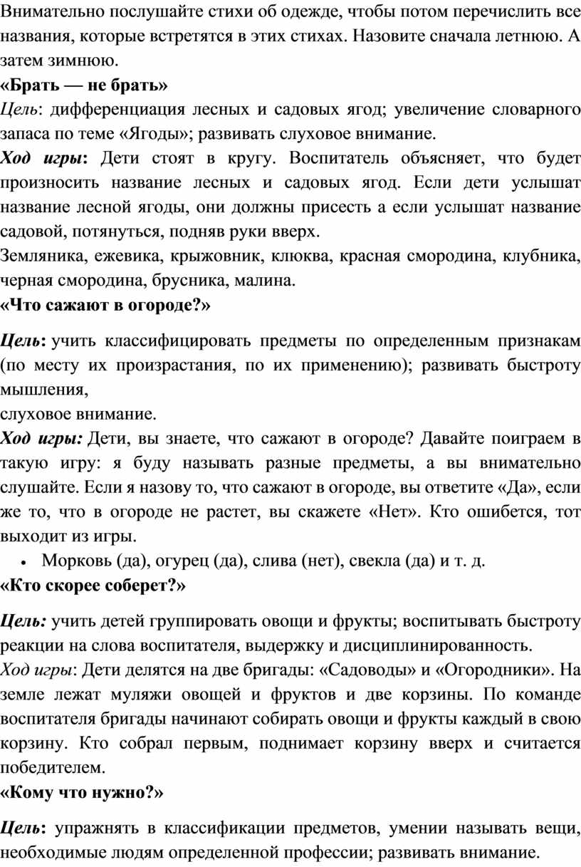 Цель: дифференциация лесных и садовых ягод; увеличение словарного запаса по теме «Ягоды»; развивать слуховое внимание.