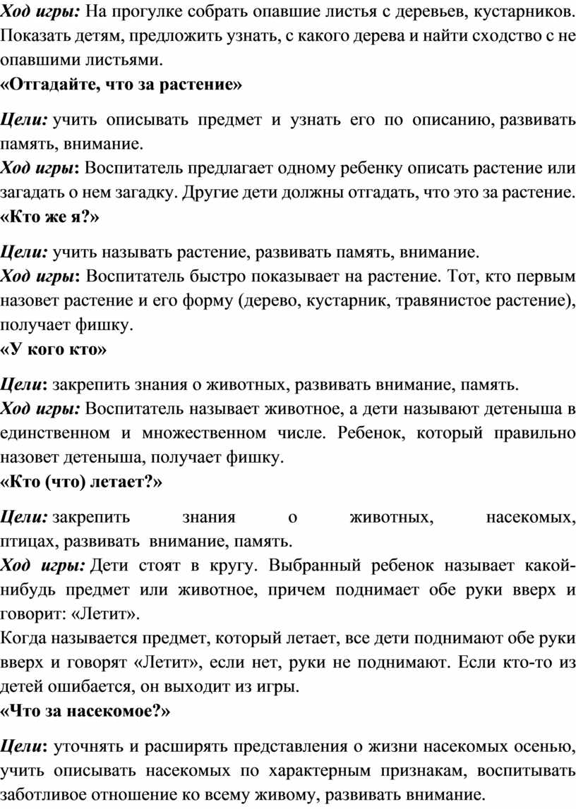 Ход игры: Воспитатель предлагает одному ребенку описать растение или загадать о нем загадку. Другие дети должны отгадать, что это за растение.