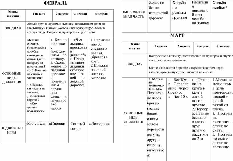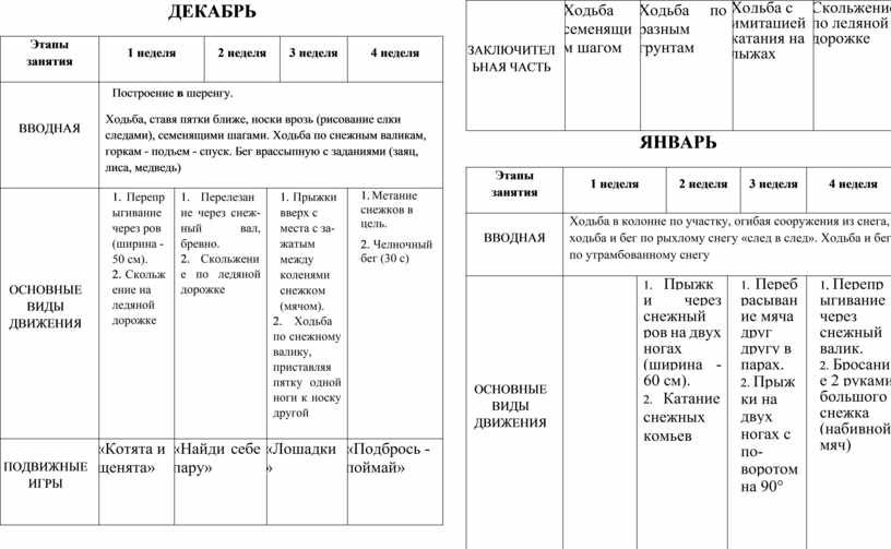 1. Перелезание через снежный вал, бревно. 2. Скольжение по ледяной дорожке |