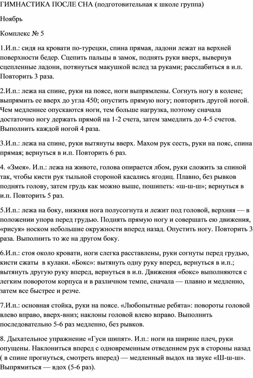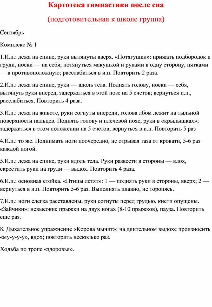 Картотека гимнастики после сна