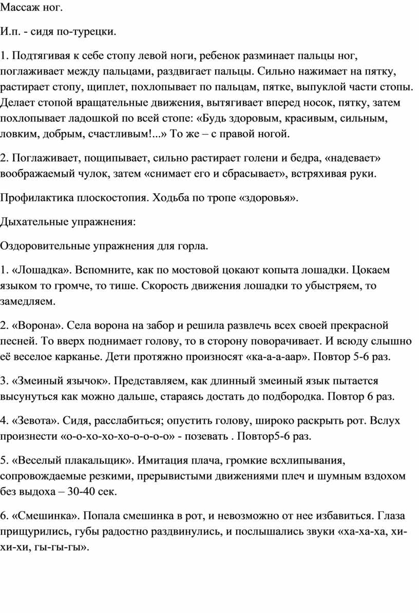 8. Дыхательное упражнение «Петух»: и.п.: стойка ноги врозь, руки в стороны. Хлопать руками по бедрам и, выдыхая, произносить «Ку-ка-ре-ку» (4-5 раз).