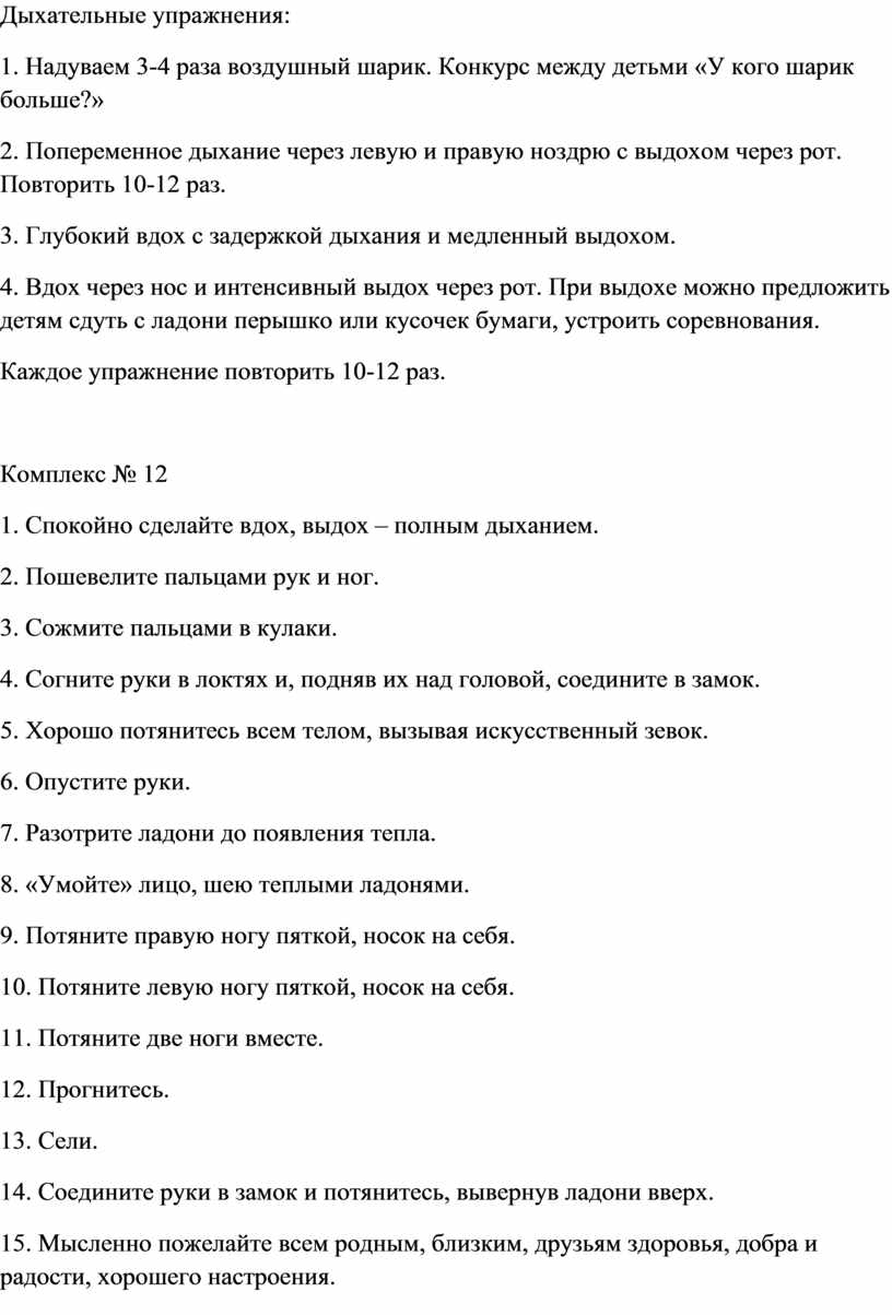 Дыхательные упражнения: