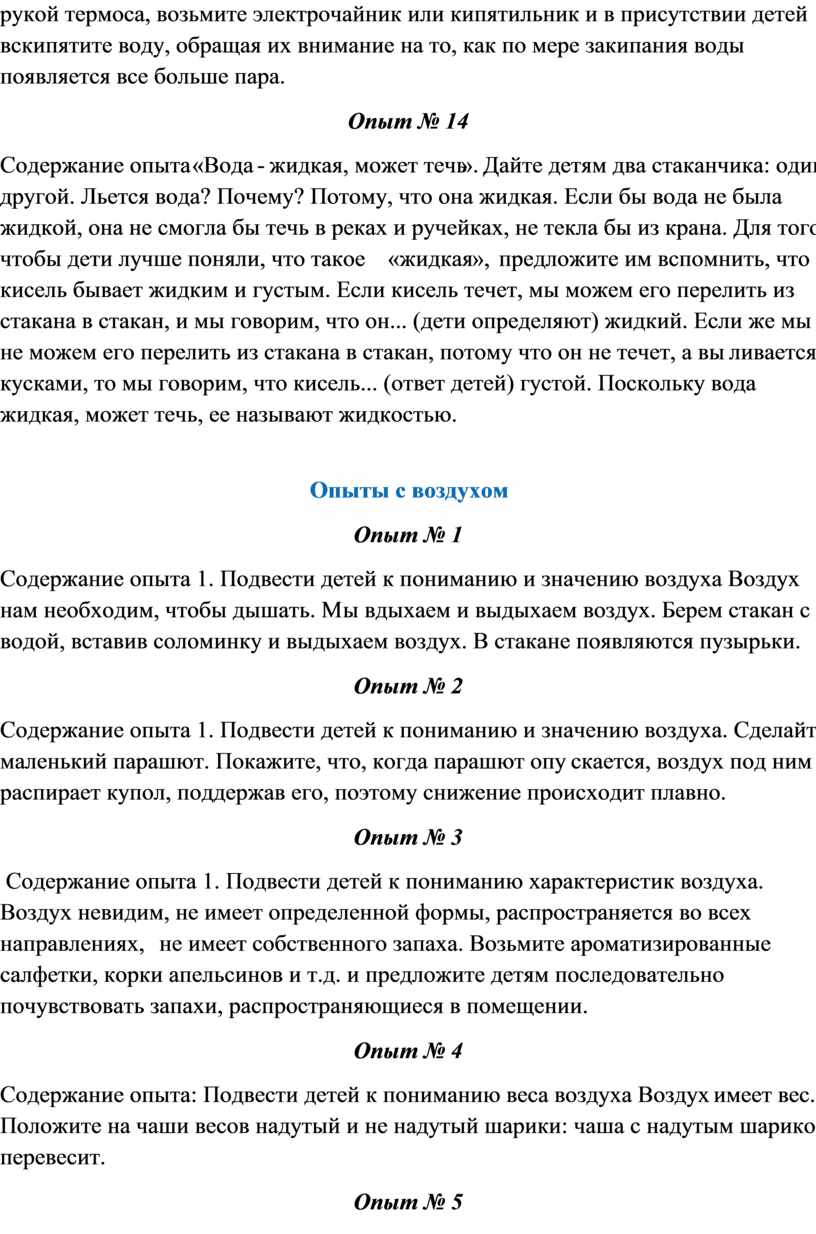 Содержание опыта 1. Подвести детей к пониманию и значению воздуха. Сделайте маленький парашют. Покажите, что, когда парашют опускается, воздух под ним распирает купол, поддержав его, поэтому снижение происходит плавно.