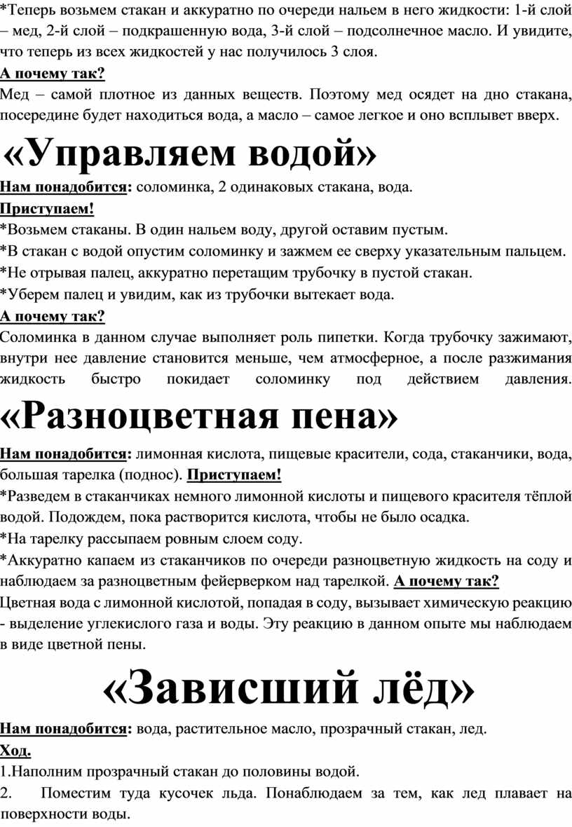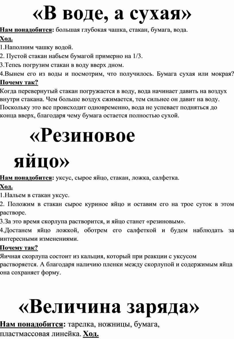 Опыты «Научные забавы»