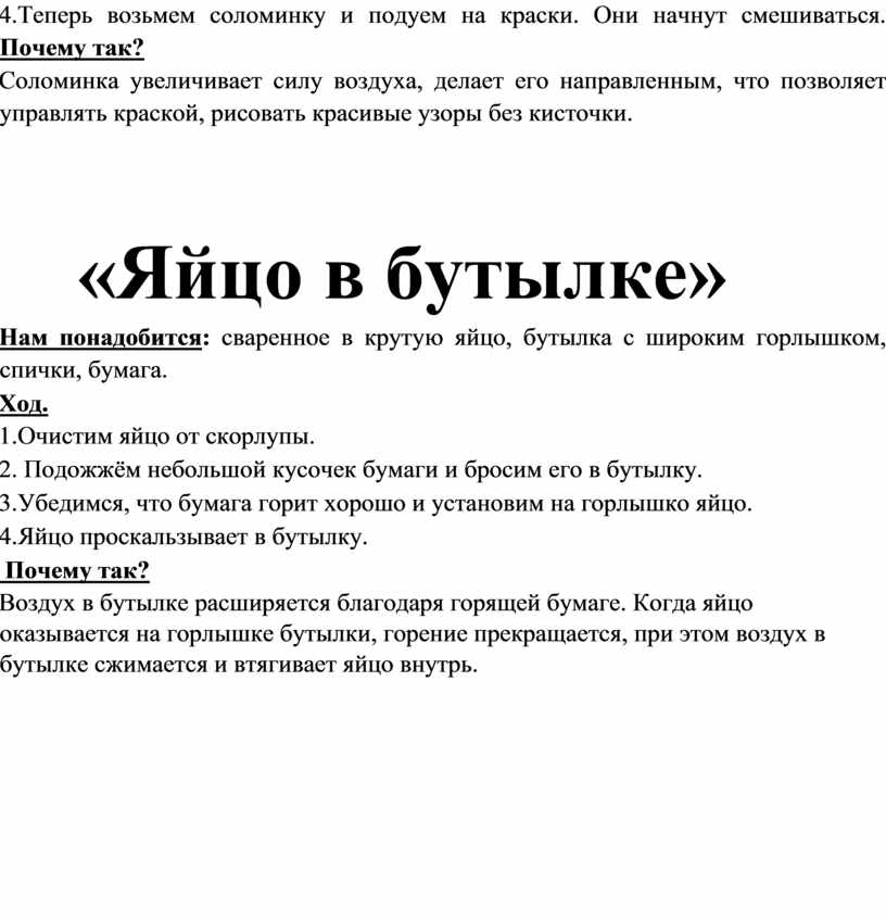 4.Яйцо проскальзывает в бутылку.