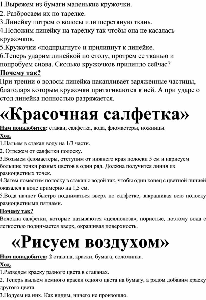 При трении о волосы линейка накапливает заряженные частицы, благодаря которым кружочки притягиваются к ней. А при ударе о стол линейка полностью разряжается. «Красочная салфетка»