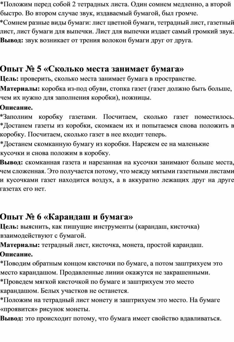 Цель: проверить, сколько места занимает бумага в пространстве.