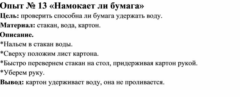 Вывод: бумага намокает в воде. Чем тоньше бумага, тем быстрее она намокает.