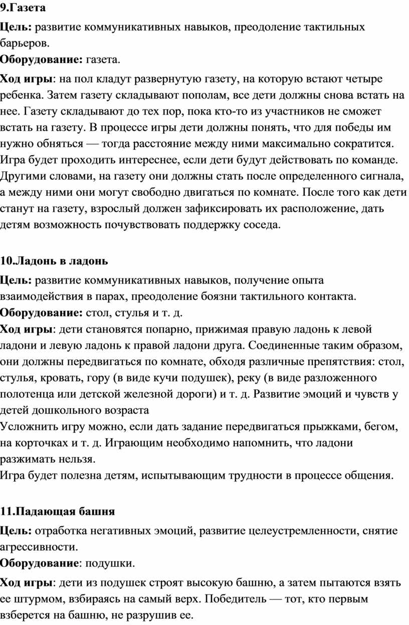 Цель: развитие коммуникативных навыков, преодоление тактильных барьеров.
