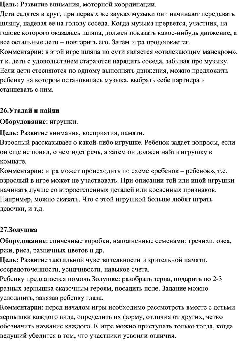 Комментарии: в этой игре шляпа по сути является «отвлекающим маневром», т.к. дети с удовольствием стараются нарядить соседа, забывая про музыку. Если дети стесняются по одному выполнять движения, можно предложить ребенку на котором остановилась музыка, выбрать себе партнера и станцевать с ним.