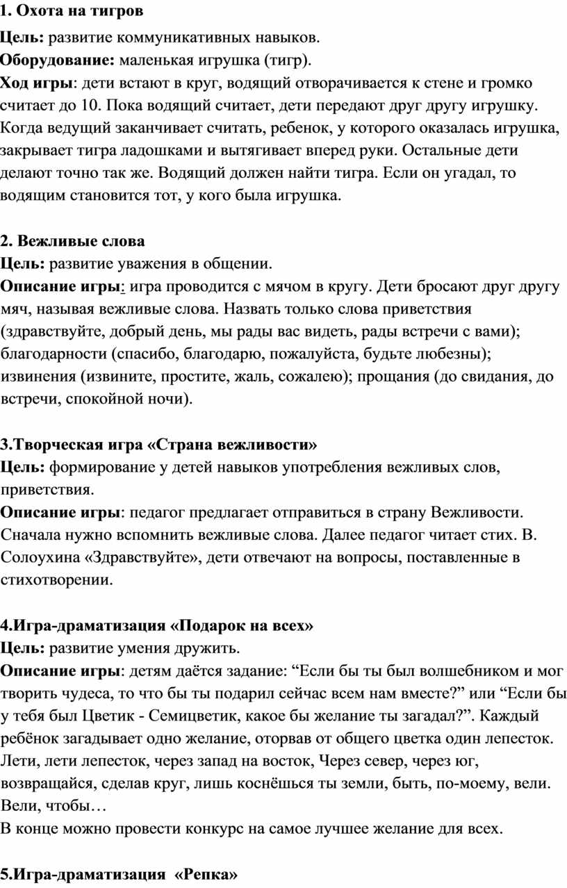 Картотека социально-коммуникативных игр для детей дошкольного возраста
