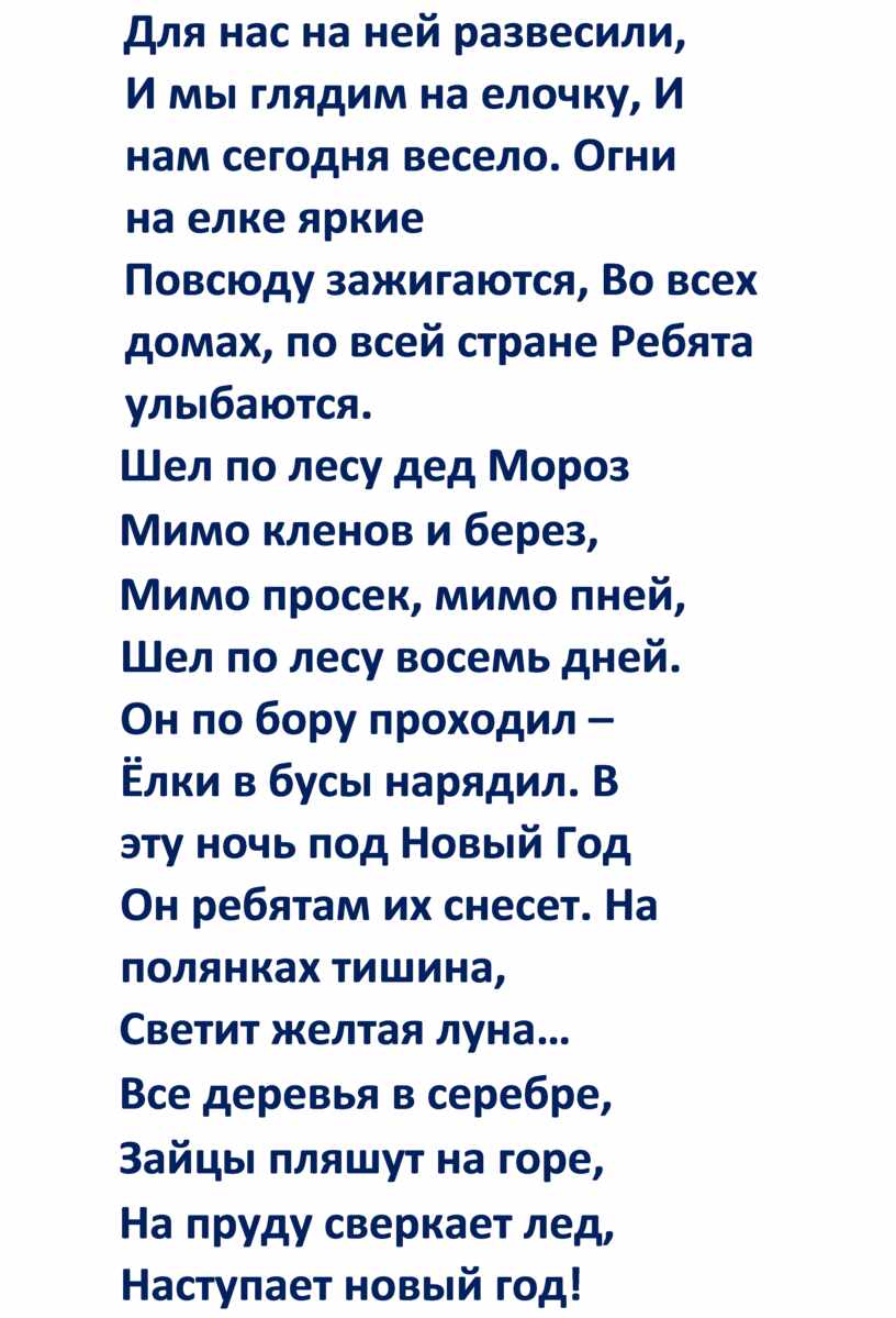 Для нас на ней развесили, И мы глядим на елочку, И нам сегодня весело. Огни на елке яркие