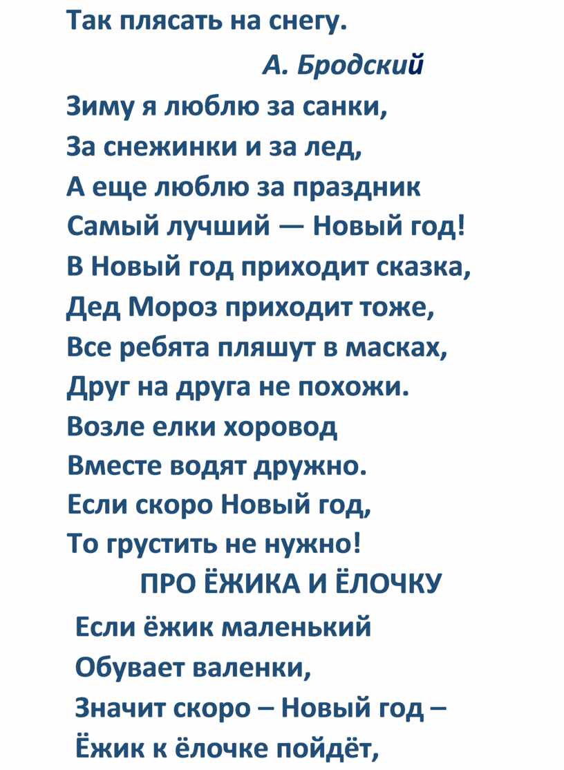 Мимо просек, мимо пней, Шел по лесу восемь дней. Он по бору проходил – Ёлки в бусы нарядил. В эту ночь под Новый Год Он ребятам их снесет. На полянках тишина,