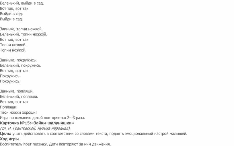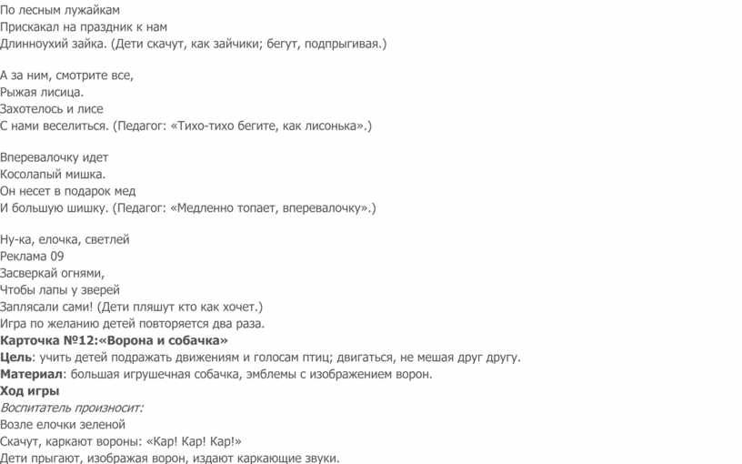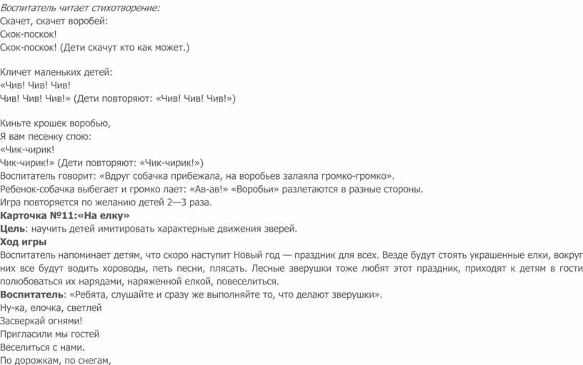 Цель: развивать двигательные навыки, упражнять в умении менять движения в соответствии с текстом.