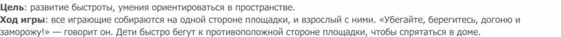 Цель: учить детей играть по правилам, развивать быстроту, ловкость, выносливость.
