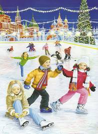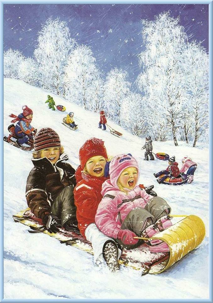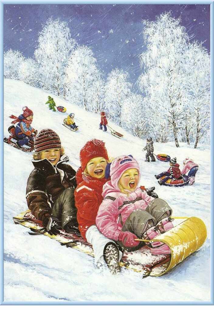 Ход игры: На середине ската горы на высоте вытянутой руки ребенка укрепляется веревка. На эту веревку вешается колокольчик или цветные ленты. Проезжая на санках, ребенок звонит в колокольчик или снимает ленты, флажки. Можно дать такое задание: взять флажок или ленту определенного цвета или во время скатывания с горки бросить снежок в ящик, стоящий сбоку.