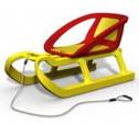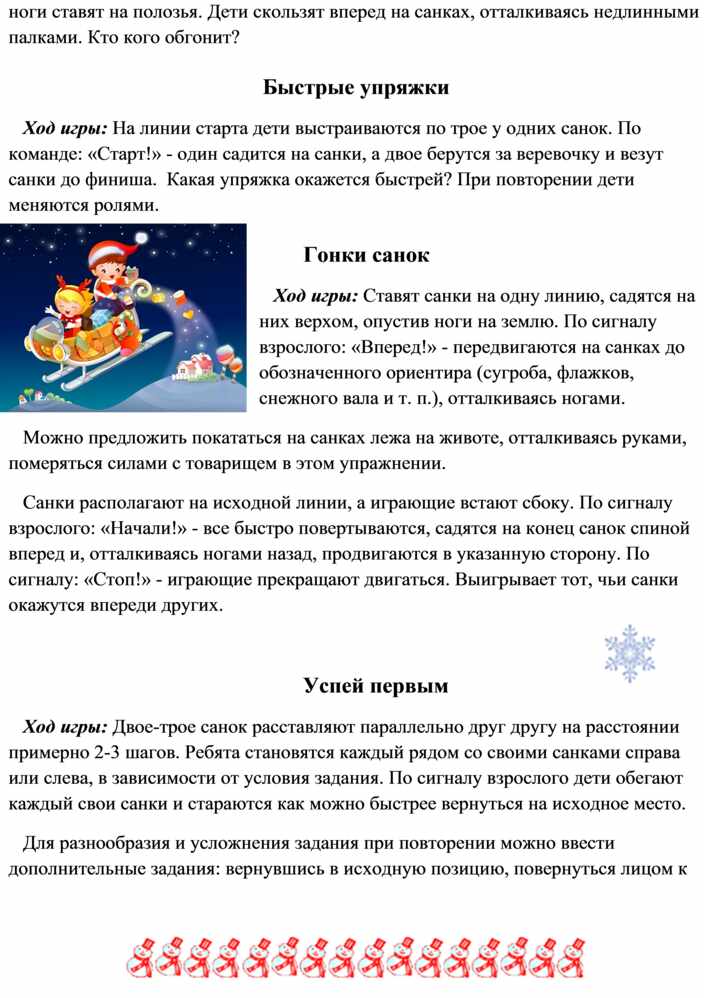 Ход игры: 2—3 детей садятся на санки спиной вперед (на одних санках может