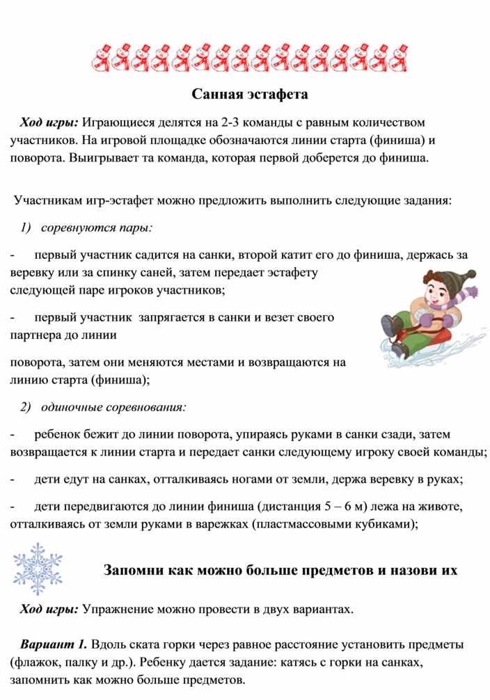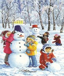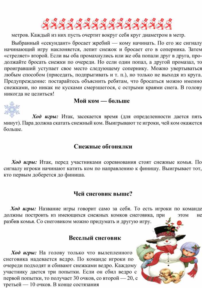 снежных комков снеговика, при этом не разбив комья. Со снеговиком можно придумать и другую игру.