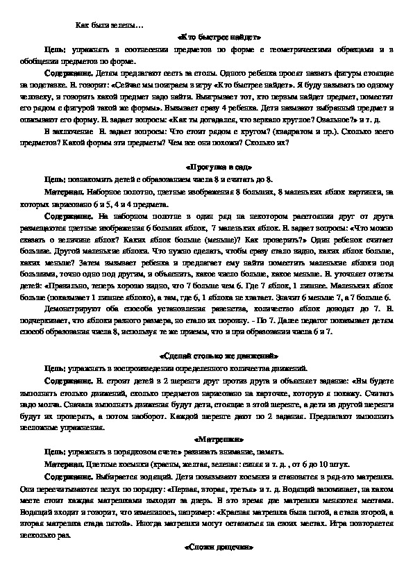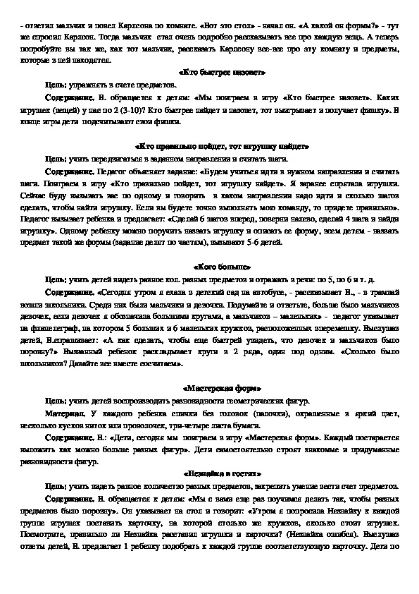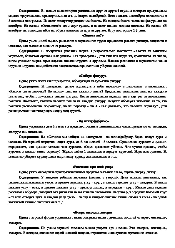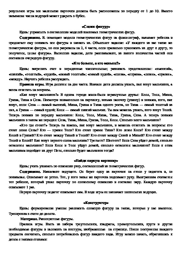 предмета сосчитать, сколько потребовалось фигур каждого вида. Игру можно начать, обратившись к