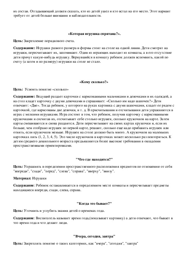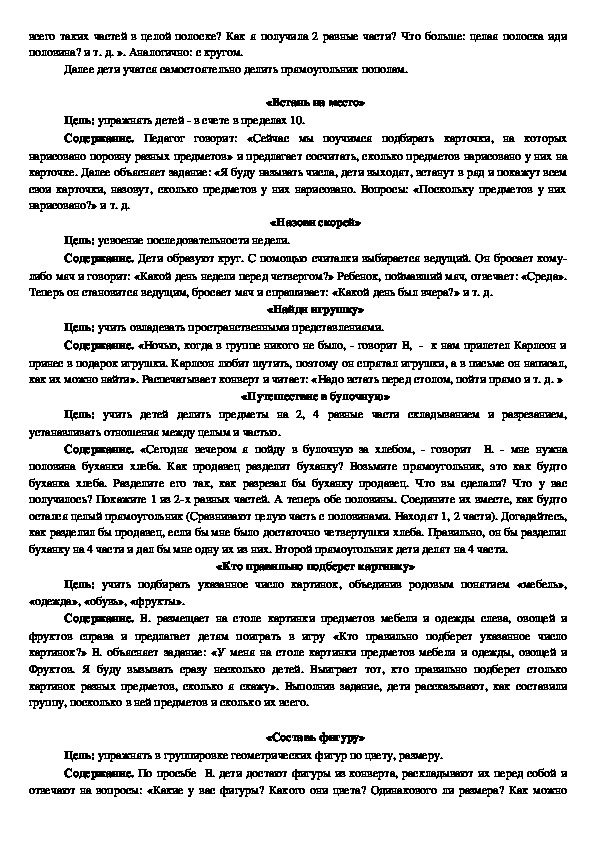 имена всех стоящих в кругу детей и, посмотрев на оставшихся, установить, кого нет. Дальнейшее