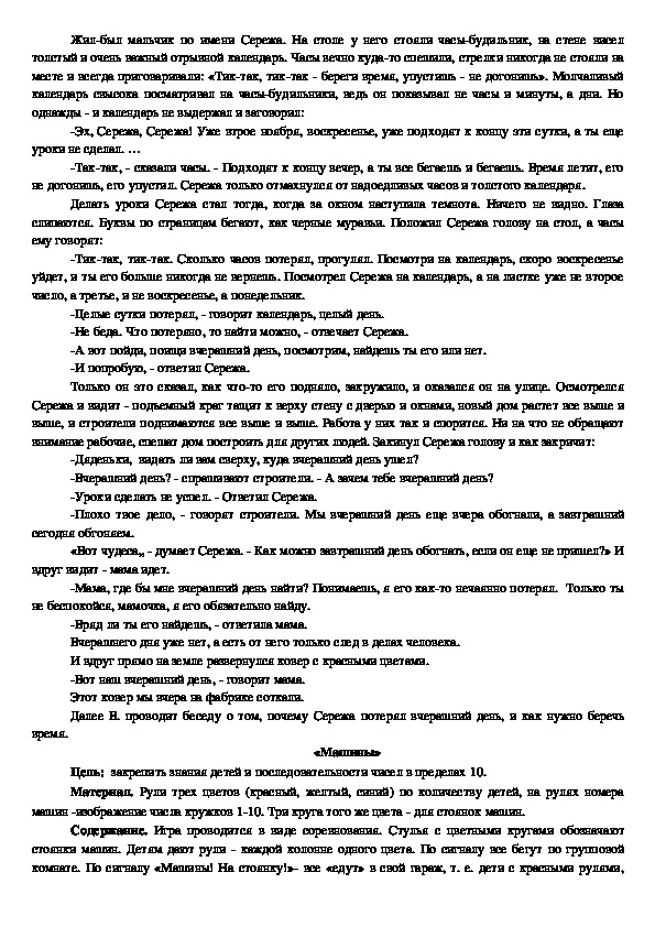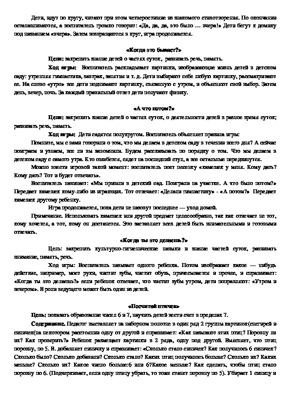 Цель: Закреплять понятие о таких категориях, как "вчера", "сегодня", "завтра"