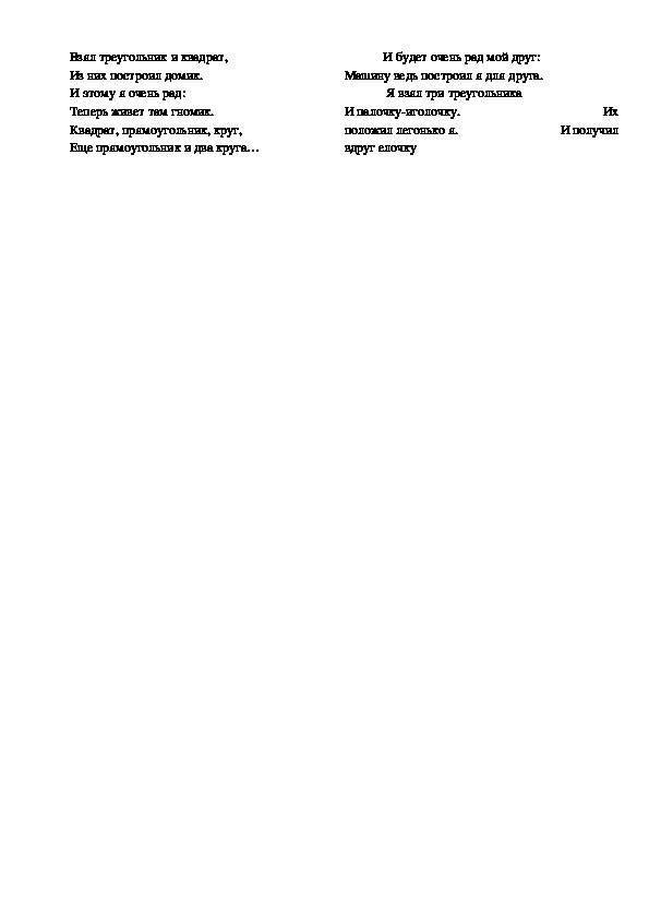 Правила игры. Взять из набора треугольники, квадраты, прямоугольники, круги и другие