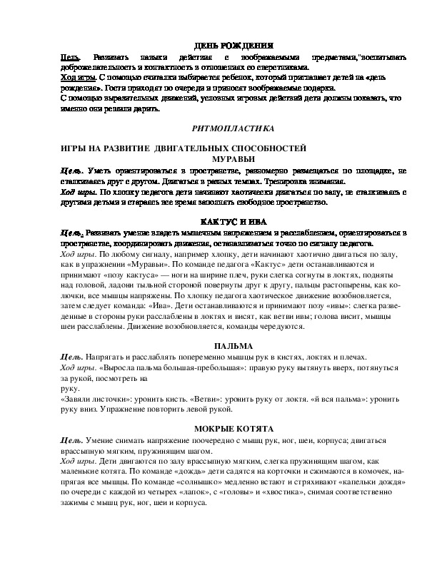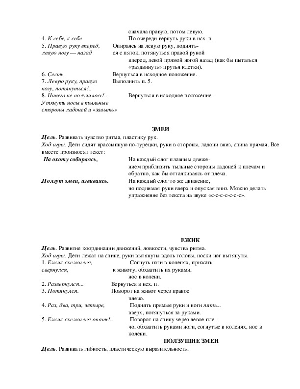Цель. Развивать воображение и фантазию, совершенствовать пластические возможности тела,