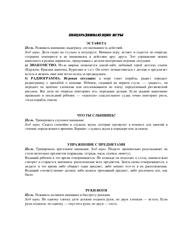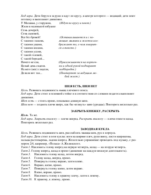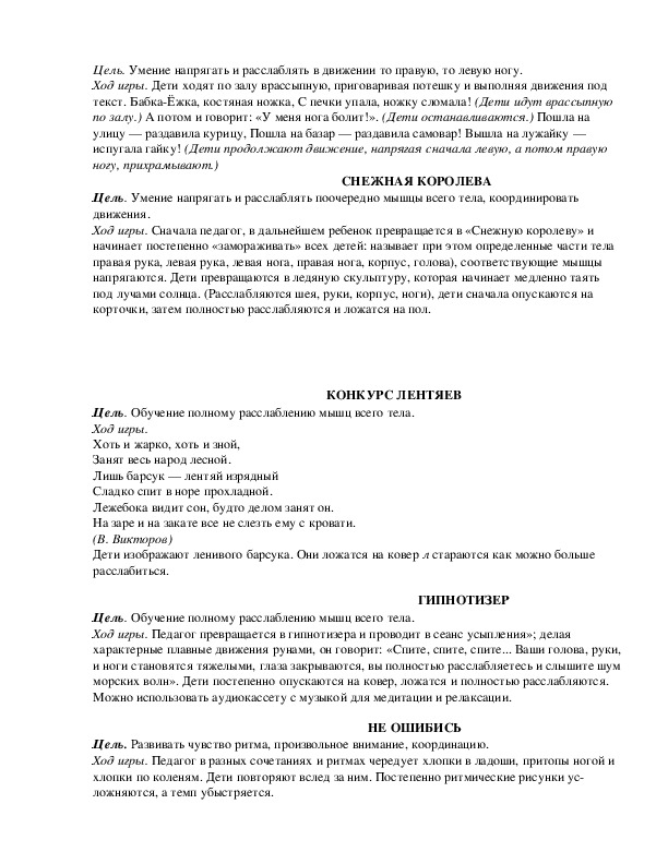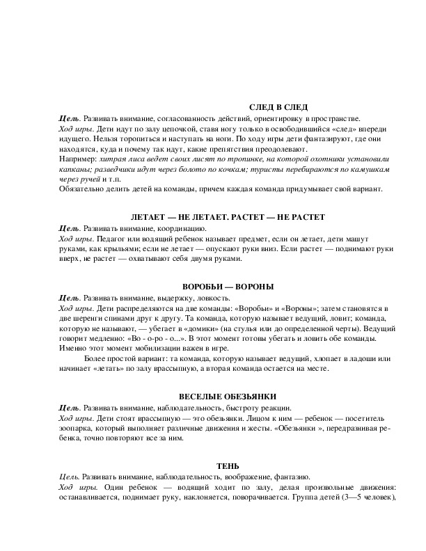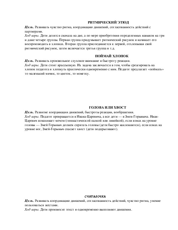 Цель. Развивать внимание, согласованность действий, активность и выдержку.