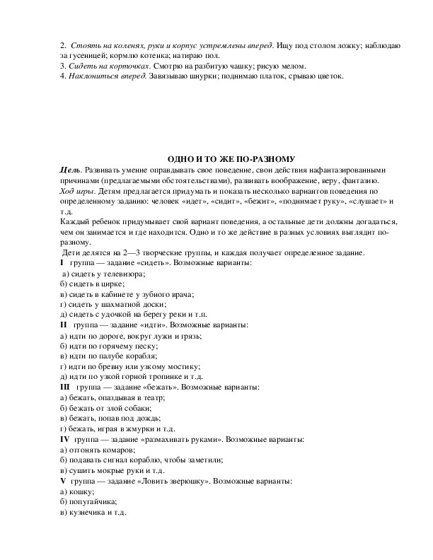 выполнять в разных вариантах, придумывая с детьми интересные игровые ситуации.