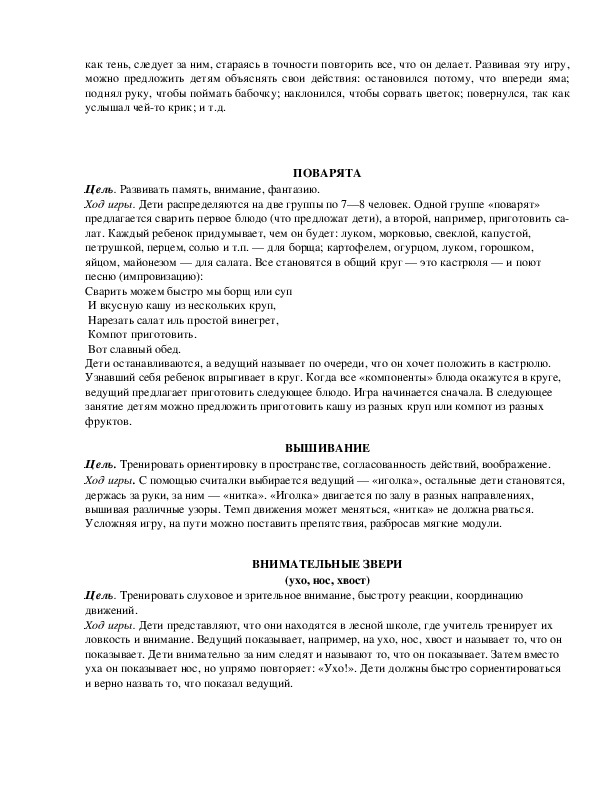 Цель. Развивать внимание, память, образное мышление. Ход игры. Играющие встают в круг и