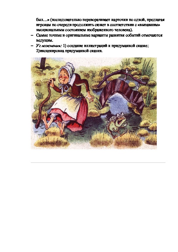 Усложнения: 1) создание иллюстраций к придуманной сказке;