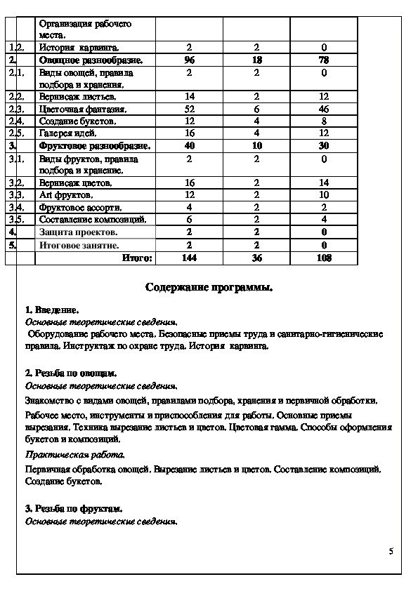 Программа рассчитана на 1год обучения, объем часов – 144. Она предусматривает