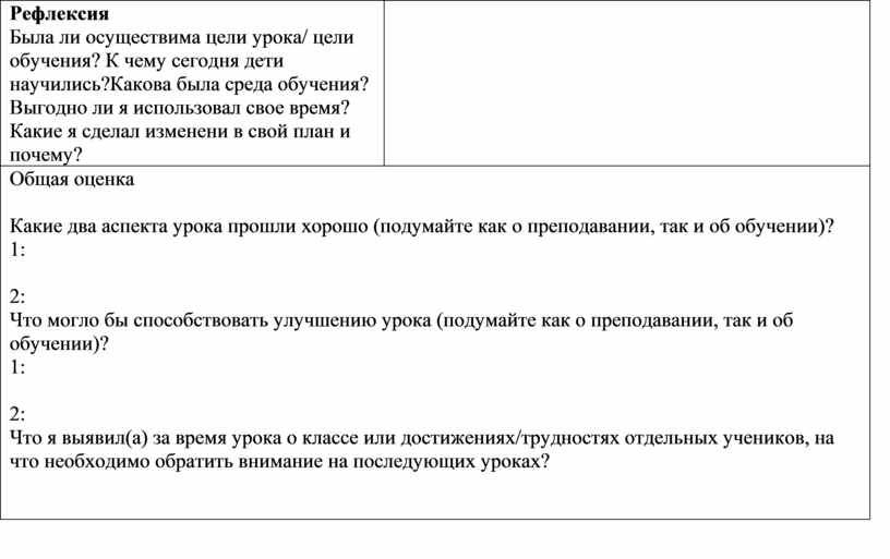 Какие два аспекта урока прошли хорошо (подумайте как о преподавании, так и об обучении)? 1: