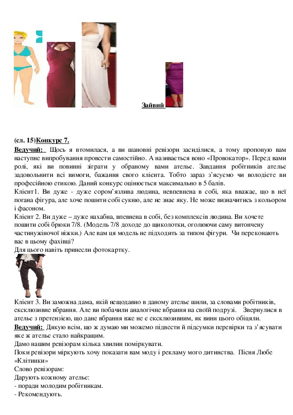 чи зможете ви підібрати одяг клієнці за типом її фігури та аргументувати свій вибір.