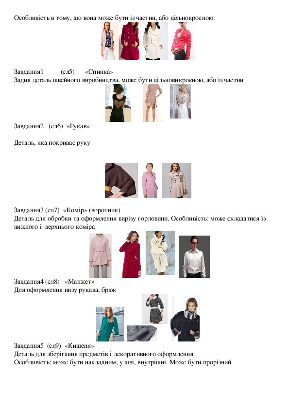 Наприклад (сл4)на всіх фото є передня деталь швейного виробництва з розрізом, який