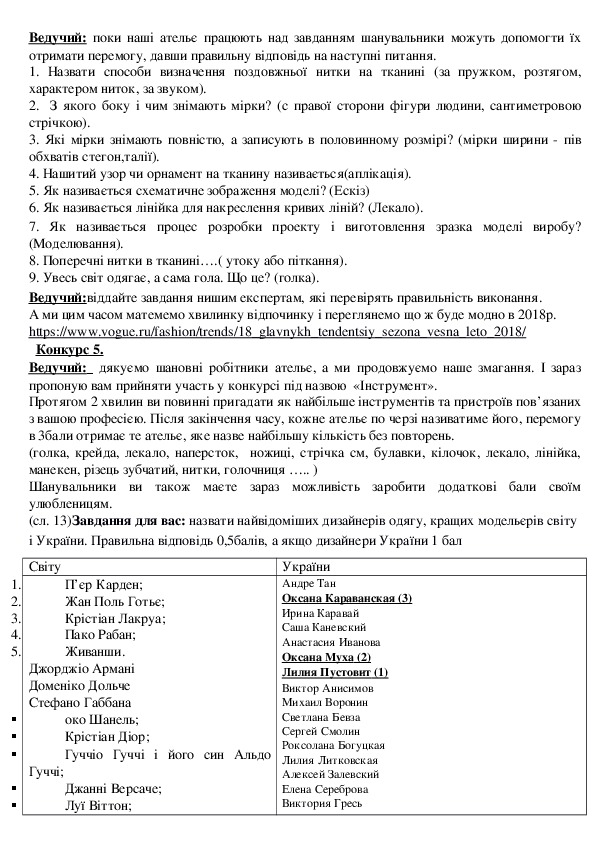 Ведучий: Радо вітаю вас на конкурсі веселих кравців. Звісно всі хочуть і мріють модно