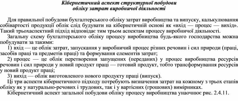 Кібернетичний аспект загальної побудови обліку процесу виробництва унаочнює рис. 2.4.11.
