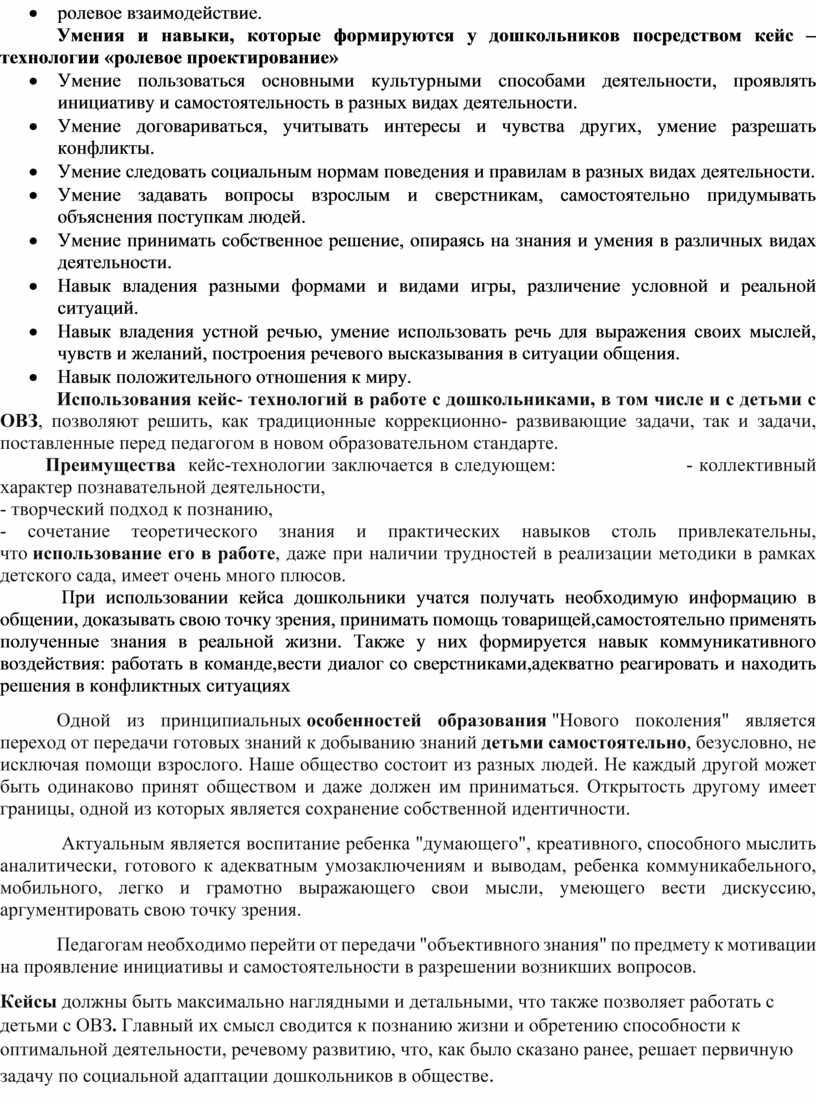 Использования кейс- технологий в работе с дошкольниками, в том числе и с детьми с ОВЗ, позволяют решить, как традиционные коррекционно- развивающие задачи, так и задачи, поставленные перед педагогом в новом образовательном стандарте.