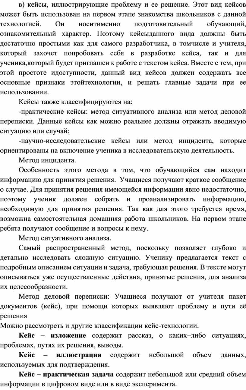 Можно рассмотреть и другие классификации кейс-технологии.
