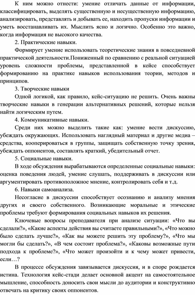 Метод кейс-технологии развивает следующие навыки:
