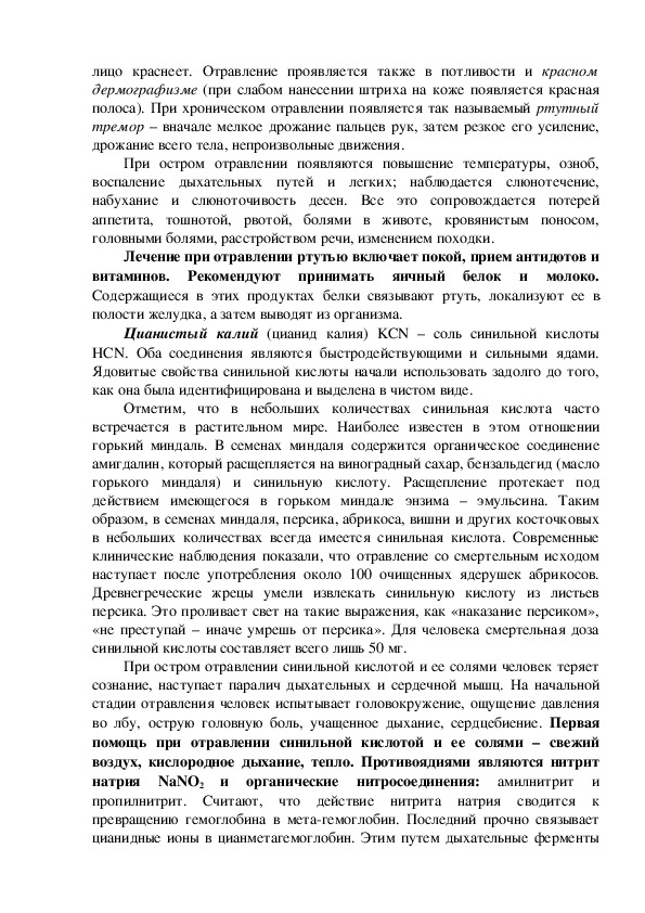 Некоторые соединения ртути также чрезвычайно ядовиты. Известно, что