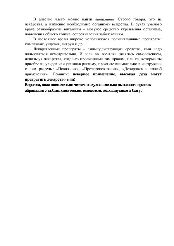 используя лекарства, когдато прописанные вам врачом, или те, которые вы