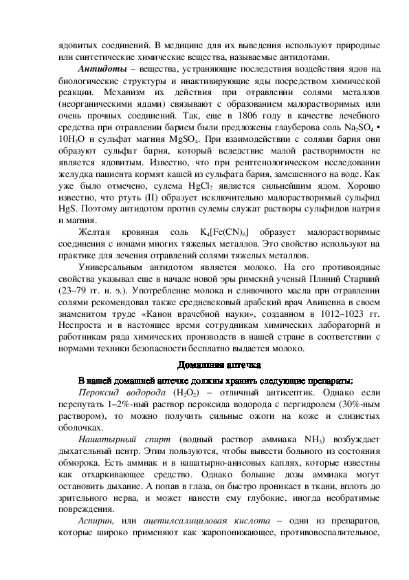 Антидоты – вещества, устраняющие последствия воздействия ядов на