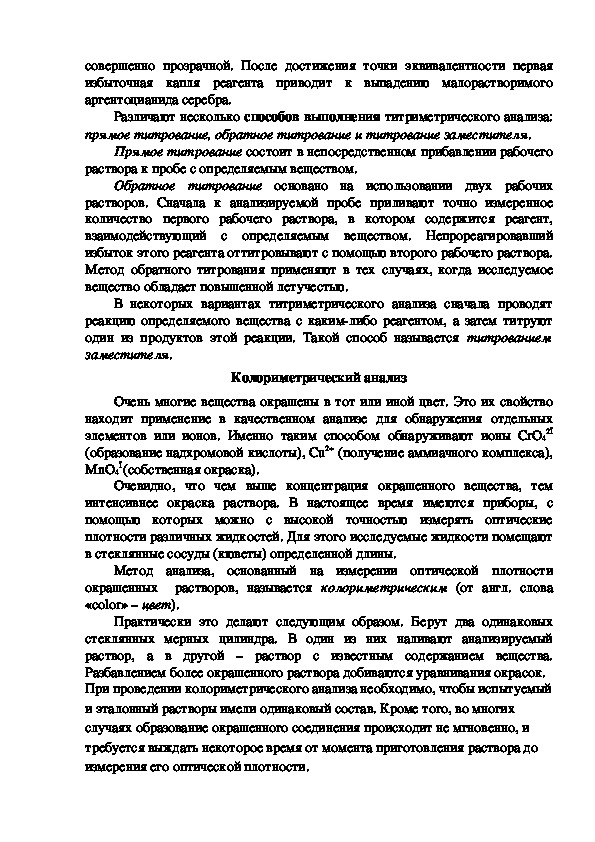 растворов. Сначала к анализируемой пробе приливают точно измеренное