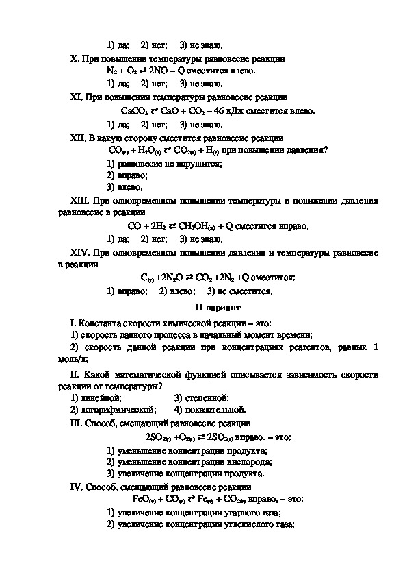 CaCО3 ⇄ CaO + CО2 – 46 кДж сместится влево.