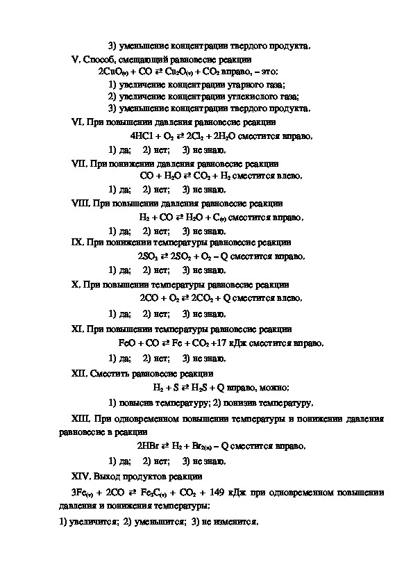 2) увеличение концентрации углекислого газа;3) уменьшение концентрации твердого продукта.
