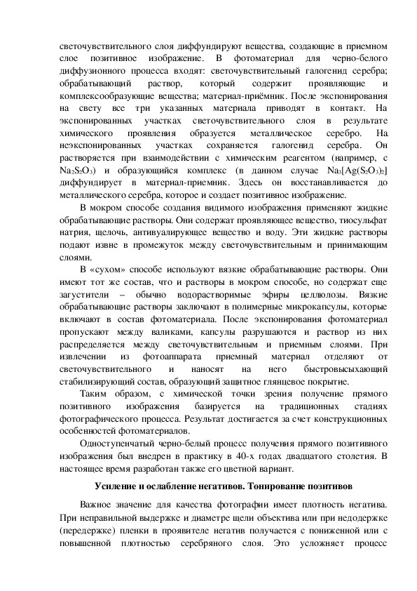 слое позитивное изображение. В фотоматериал для чернобелого