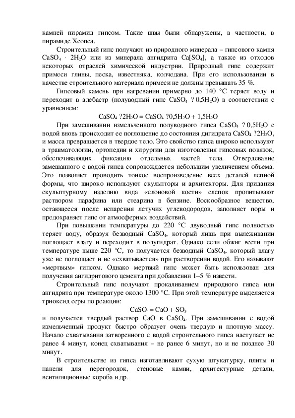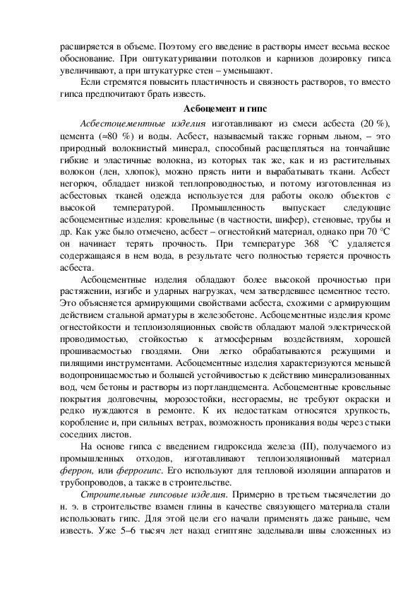 уменьшению прочности изделий. Гипс является воздушновяжущим