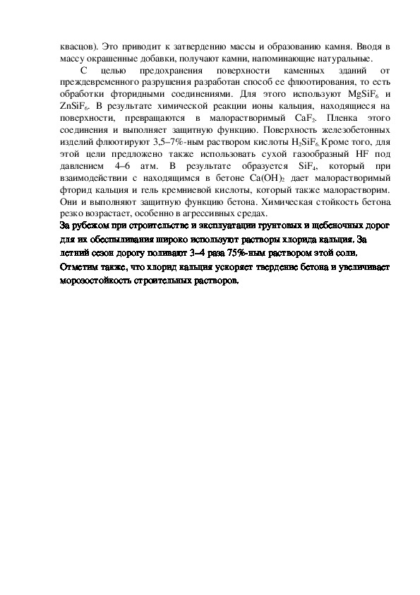 Отметим также, что хлорид кальция ускоряет твердение бетона и увеличивает