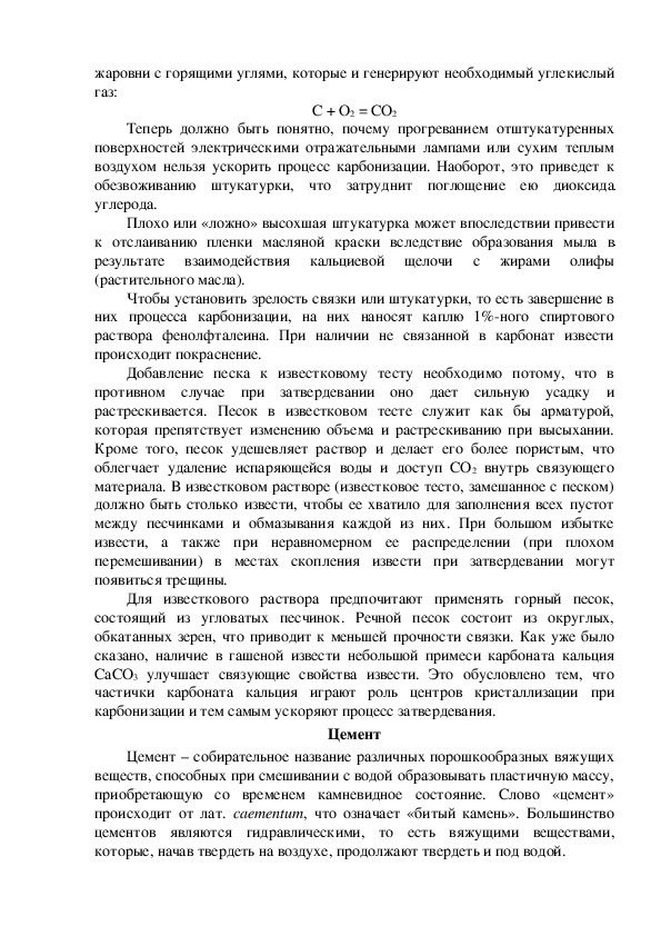 СаСО3 улучшает связующие свойства извести. Это обусловлено тем, что